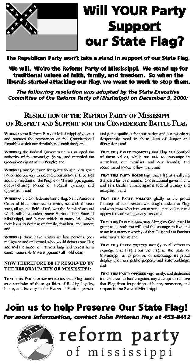 Become the First and ONLY Party to adopt and publish a strong resolution supporting our state flag, the values it represents, and the brave patriots who rallied 'round it.